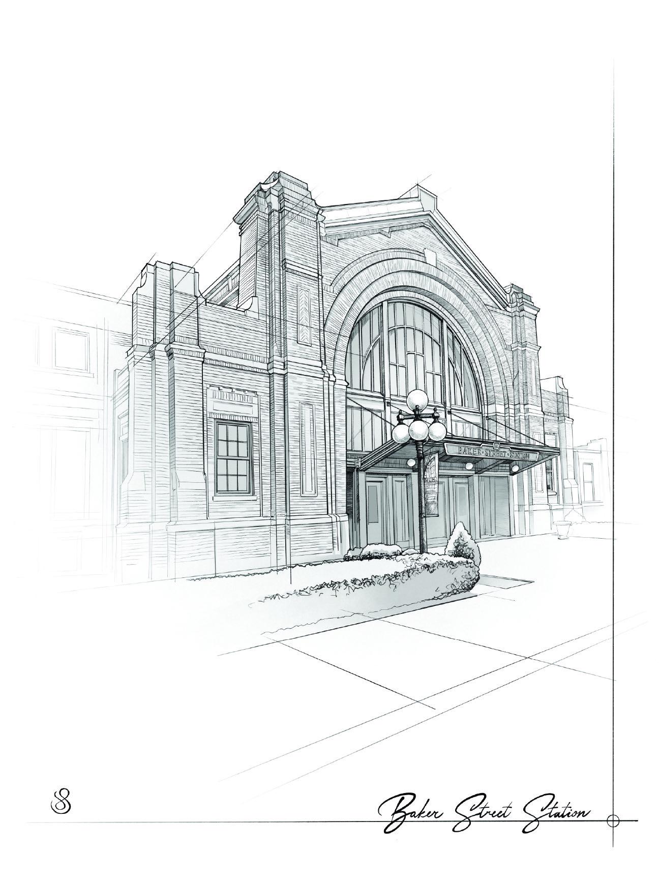 18x24” art print of the Baker Street Station located in Fort Wayne, Indiana. by artist J. Selzer