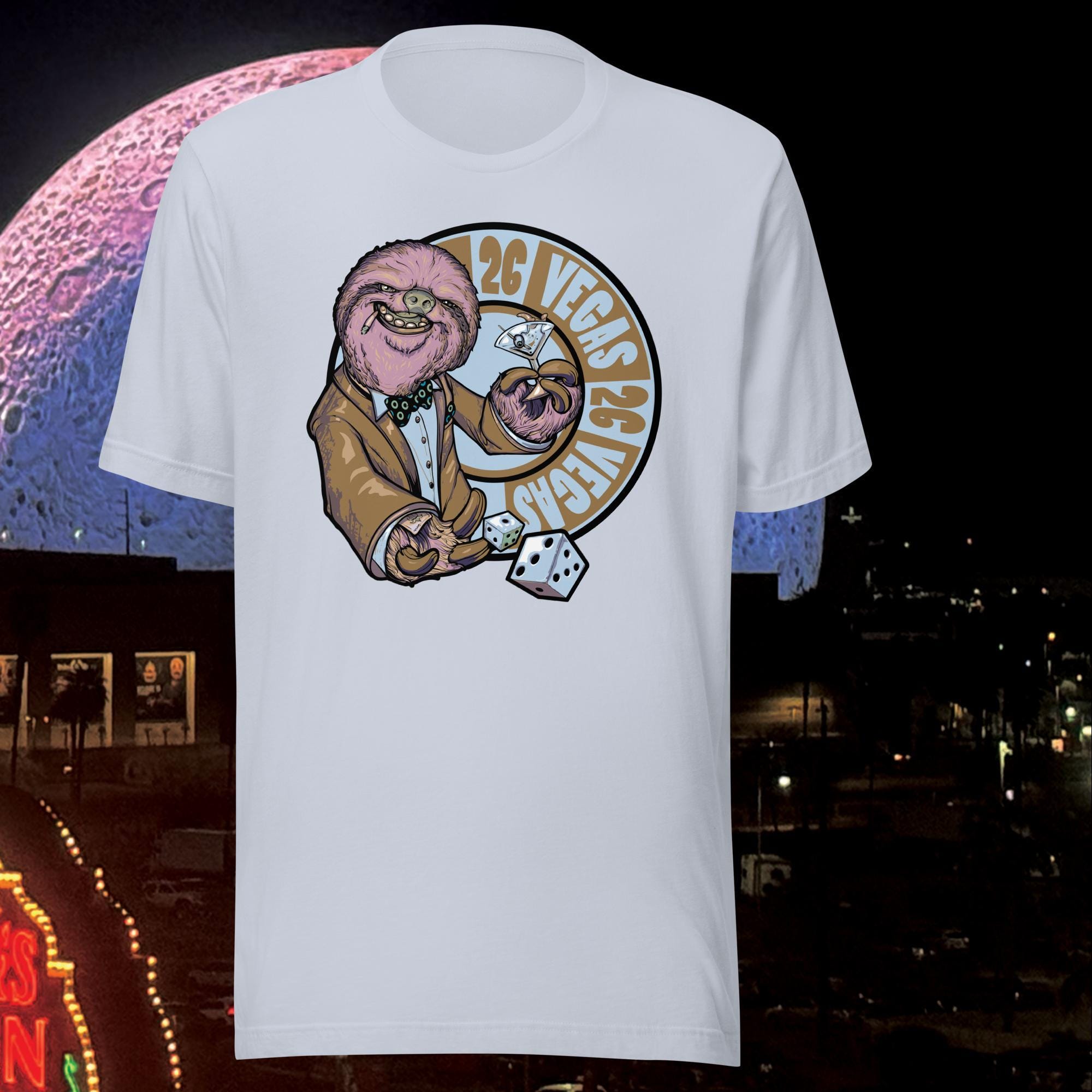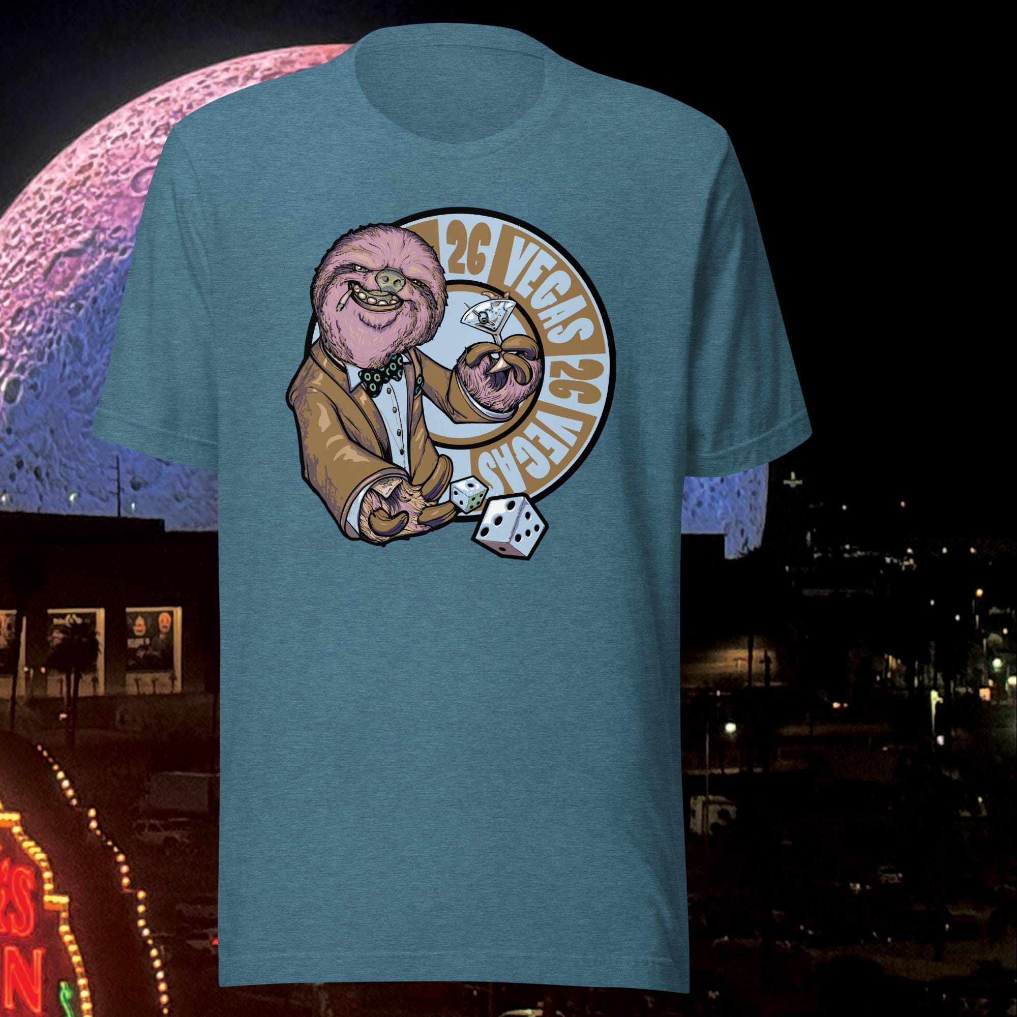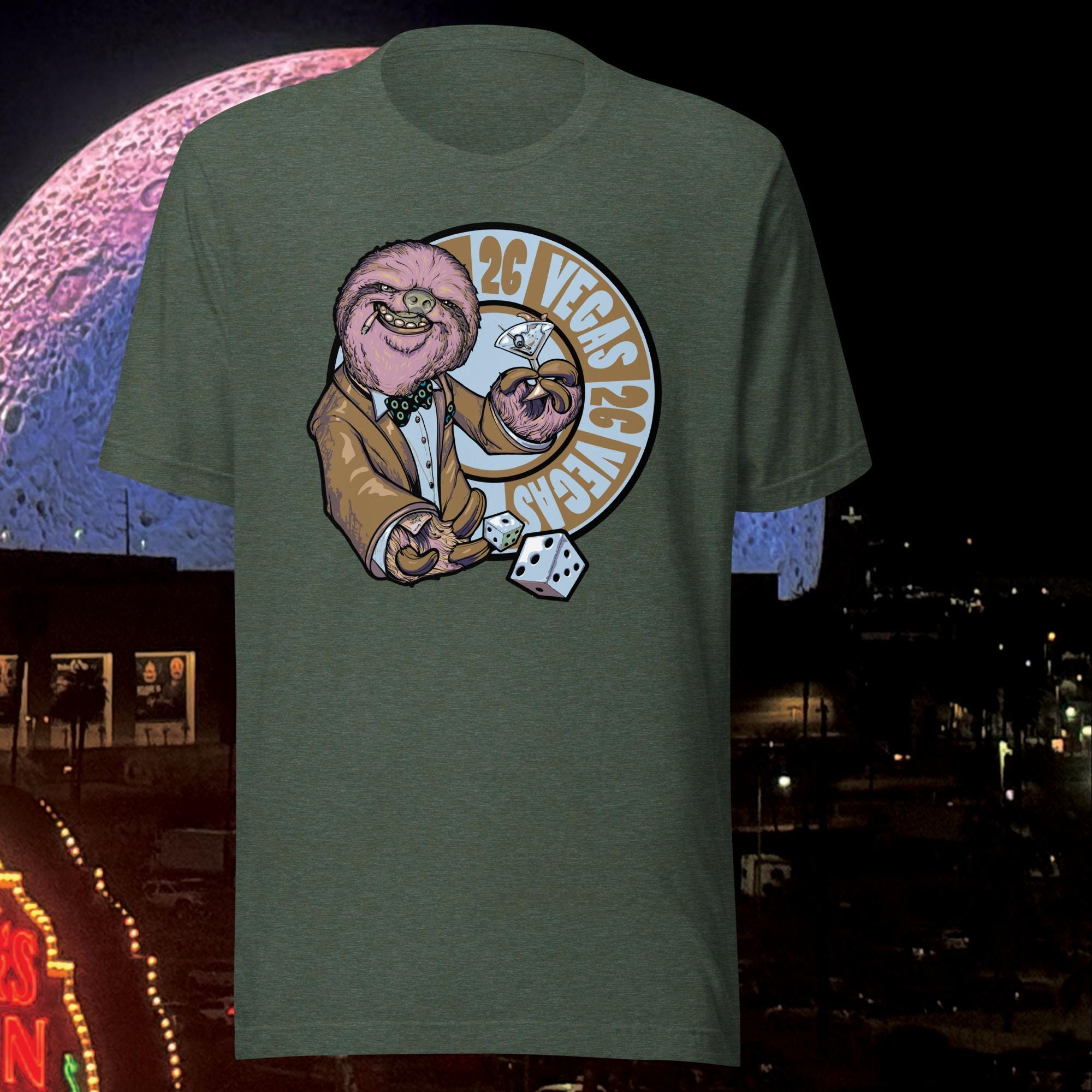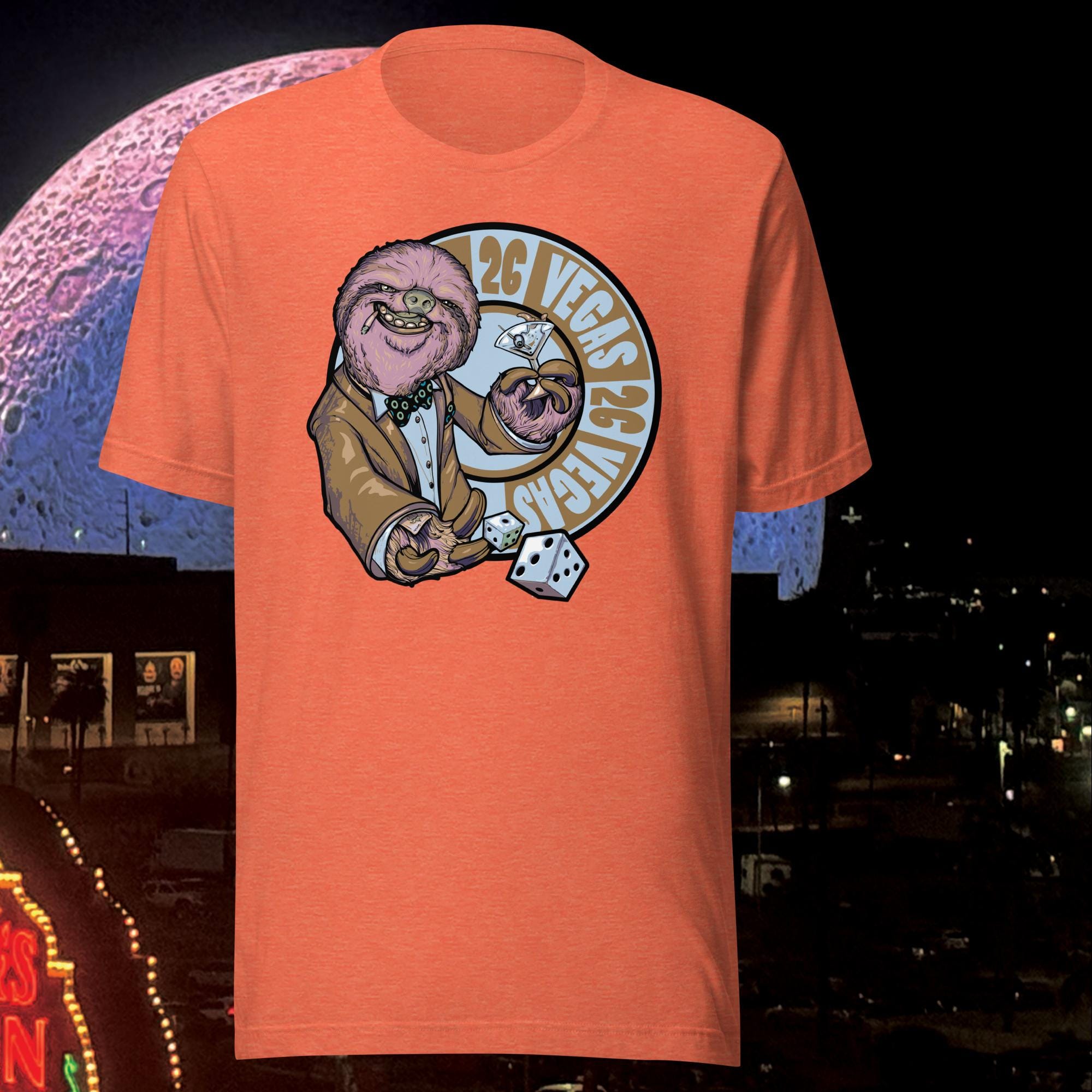 Are you ready to roll the dice with The Vegas Sloth in 2026? This nasty character looks great on our soft and lightweight, Bella & Canvas unisex t-shirts. It's comfortable and flattering for all phans.